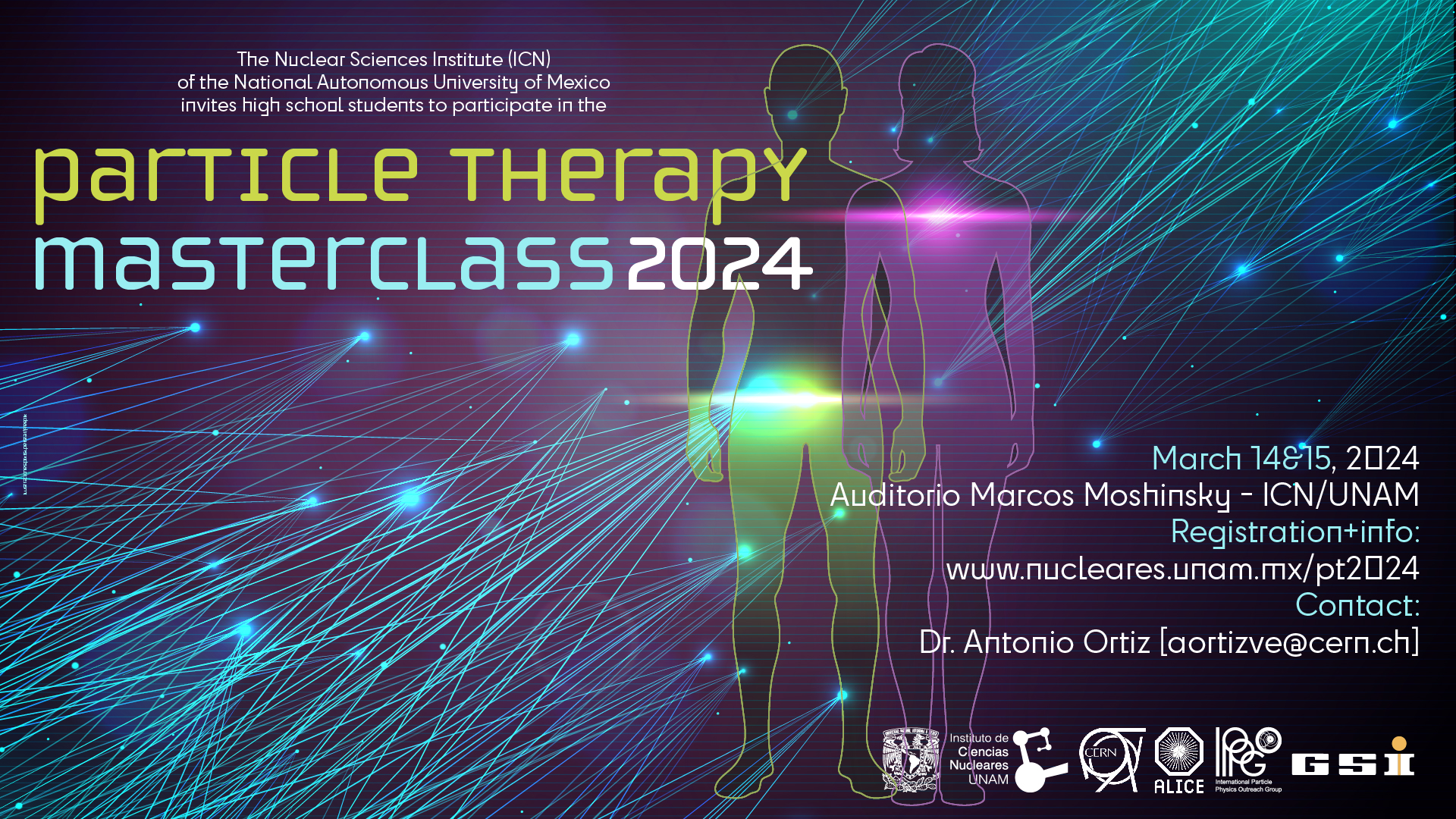 The Nuclear Sciences Institute (ICN) of the National Autonomous University of Mexico invites high school students to participate in the International Masterclass on Particle Therapy. The Particle Therapy Masterclass demonstrates the direct impact of fundamental research on medical applications. This Masterclass Project allows participants to familiarise with the actual operation technique used for cancer treatment employing x-rays, protons or carbon ions like a physical knife directed by software programs.  The Particle Therapy Masterclass is integrated in the International Physics Masterclasses, a well-established outreach educational activity and flagship project of the International Particle Physics Outreach Group, IPPOG, spread around the world. Each year more than 13000 students from more than 60 countries come to one of about 225 nearby universities or research centres for one day in order to unravel the mysteries of particle physics and its applications. At the end of each day, like in an international research collaboration, the participants join in a video conference for discussion and combination of their results. This event has received funding from PAPIME-UNAM under grant No. PE100124.